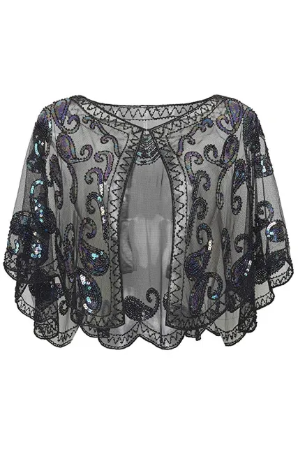 - This chiffon and lightweight wrap with blinking decorative beads can match perfectly with your 1920s flapper outfit, also charming with any other types of dresses, sweater, shirts, etc.