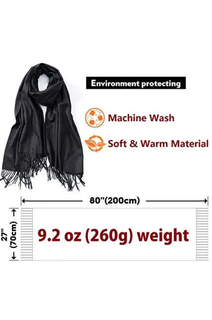 - Super cozy and warm,50% cotton 50%viscose. Approximate length 80" (74" + 3" fringes each side); width approx. 27", weight approx. 9.2 OZ / 260G.