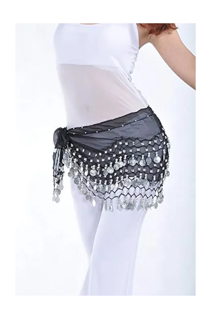 - Belly Dance Wave Shape Hip Scarf With GOLD Coins Material:Flannel