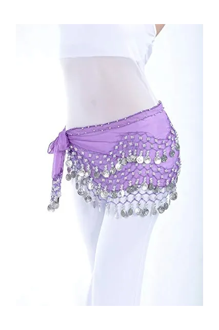 - Belly Dance Wave Shape Hip Scarf With GOLD Coins Material:Flannel