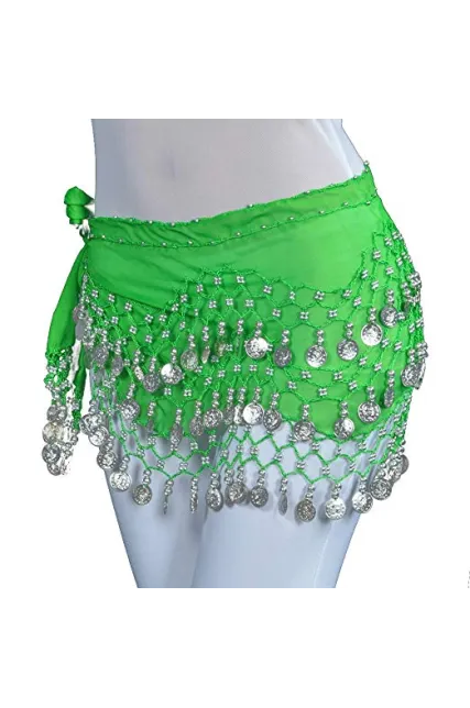 - Belly Dance Wave Shape Hip Scarf With GOLD Coins Material:Flannel