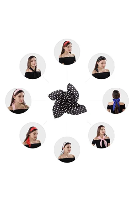 - Perfect size: 27.5 INCHES. Extra long and large square scarves in current markets. A great accessories for 50s themed party, halloween costume and daily wear.
