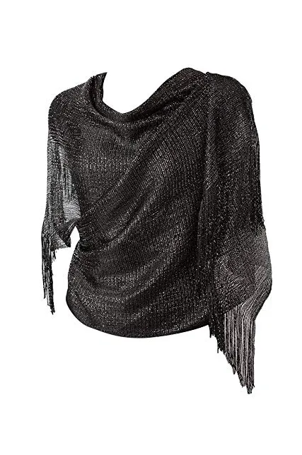 MissShorthair Womens Wedding Evening Wrap Shawl Glitter Metallic Prom Party Scarf with Fringe
