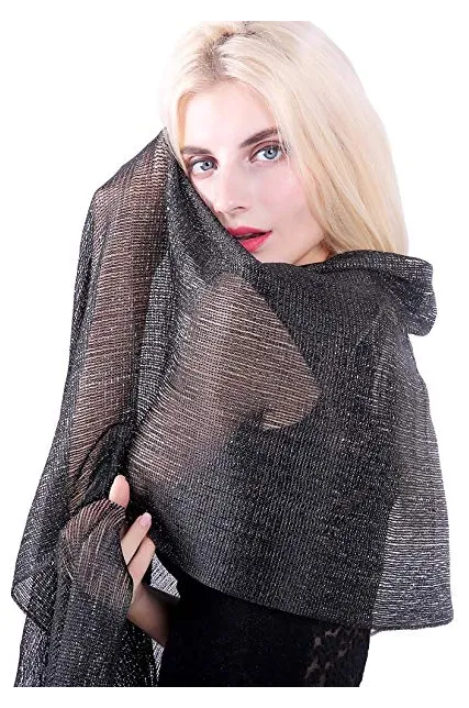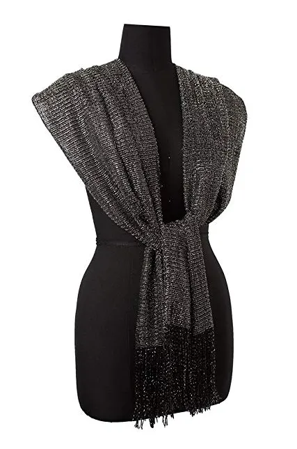 - HIGH FASHION: These Shinning Luxurious Scarves are with Shimmer Metallic Thread and Elegant Tassels in various classic colors. It can be worn long, infinity, looped, twisted or doubled around neck.
