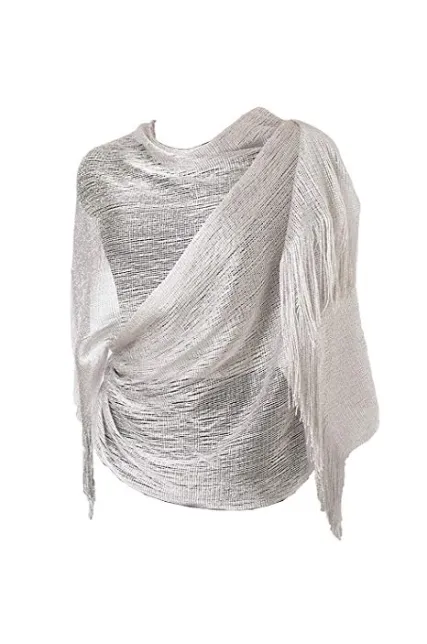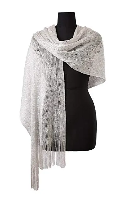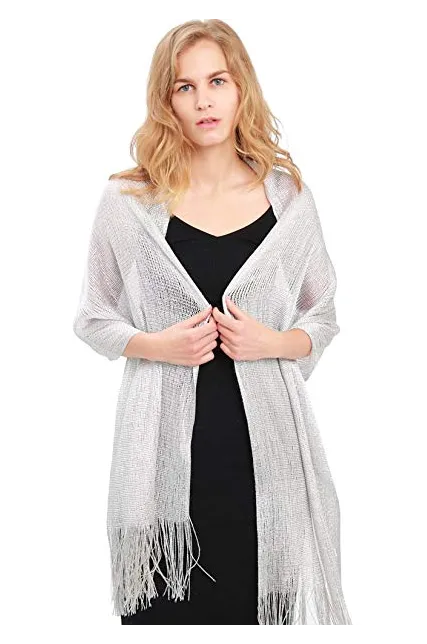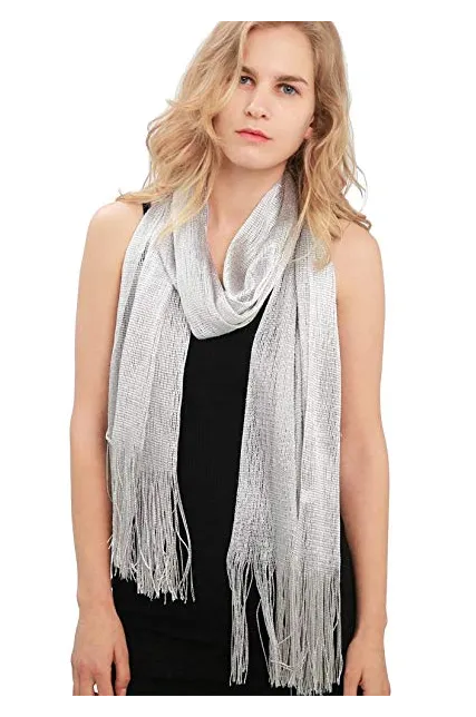 MissShorthair Womens Wedding Evening Wrap Shawl Glitter Metallic Prom Party Scarf with Fringe