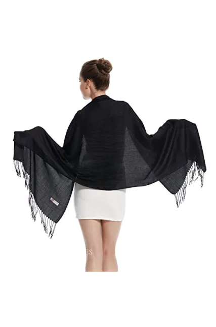 - Pashmina Scarf Size: 28 inches Wide X 72 inches Length. 3 inches hand knotted tassels at each ends