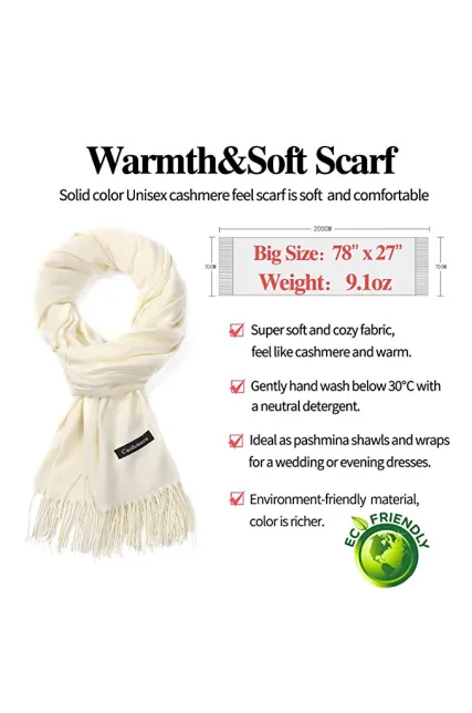 Pashmina Scarf Women Soft Cashmere Scarves Stylish Large Warm Blanket Solid Winter Shawl Elegant Wrap 78.5"x27.5"