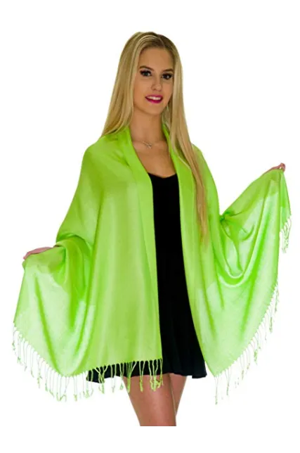 - ✅Silky, Soft High Quality Material: 70% pashmina and 30% silk. Hand wash in cold water, tumble dry for long lasting performance or lay flat to dry without twisting it. Measures Approximately 72” and 29” with fringe and fringe is 3.5”