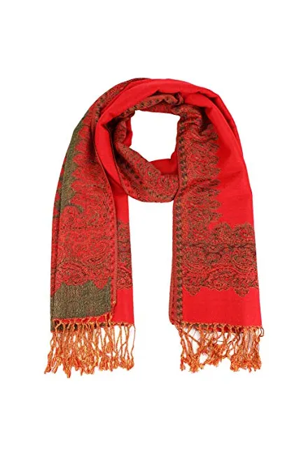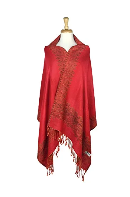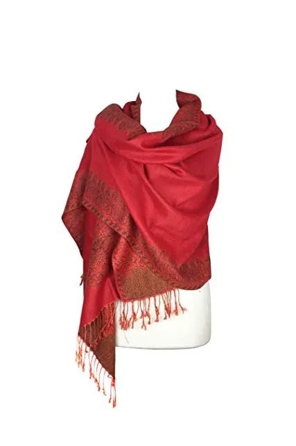 Paskmlna Border Pattern Double Layered Reversible Woven Pashmina Shawl Scarf Wrap Stole