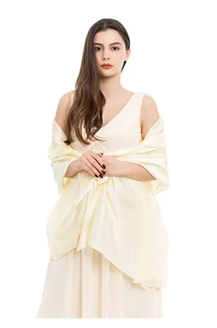REEMONDE Womens Luxurious Soft Satin Long Chiffon Bridal Scarf Shawl Wraps Pashmina for Evening Party