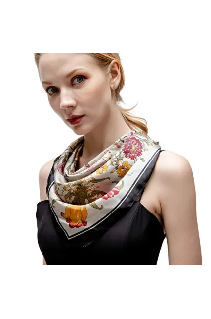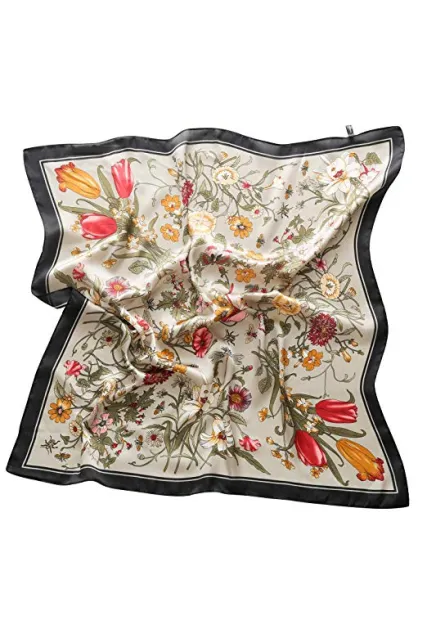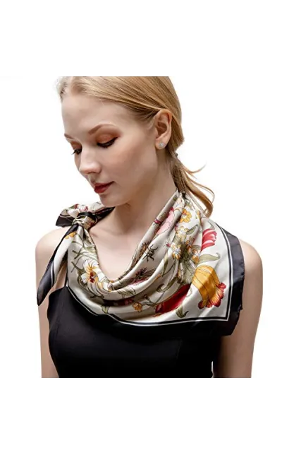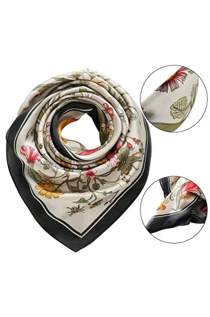 RIIQIICHY Women's 27.5'' Silk Satin Square Floral Print Hair Head Scarf Neckerchief