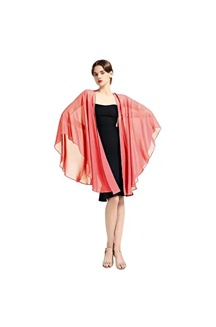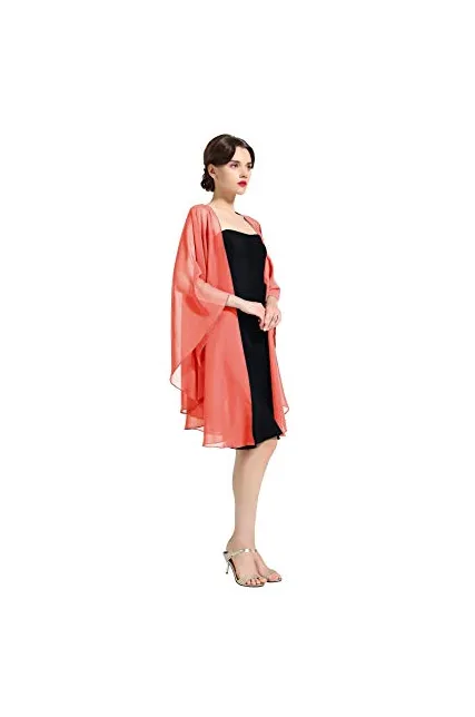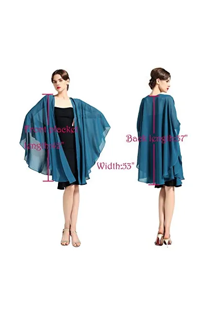 - COVER YOUR SHOULDERS & ARMS PERFECTLY --- Front placket length:42", Back length:37",Width:53". This shawl is wide enough gives you a very elegant look. This light and silky chiffon wrap, especially perfect to add to a summer dress to make it looks more formal.it is One Size fits all.