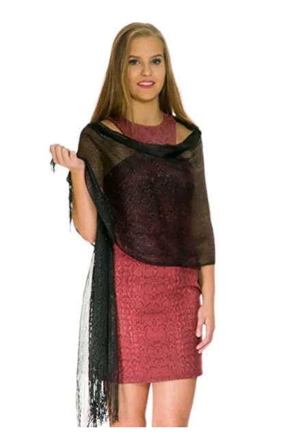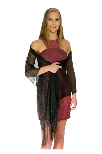 - ✅ Fashion Shinning Lightweight Luxurious Lace Fringed Scarves have a Shimmer Metallic Thread Accent and an Open Knit Design. Are Available in Many Gorgeous Colors: Red,White, Silver, Gold, Green, Pink, Navy Blue, Yellow, Orange, Burgundy, Grey, Beige, Champagne, Teal, Purple, Turquoise. Ladies can wear it long, knotted, looped, twisted, or doubled around neck.
