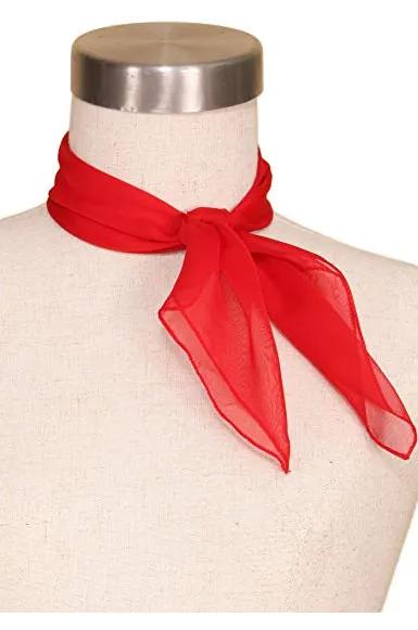 - This classic scarf is a staple piece in every retro gal’s closet! Add a little flair to any outfit with this square chiffon scarf that can be tied around your hair or around your neck!