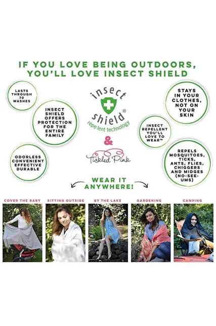 Tickled Pink Insect Shield Scarf to Repels Mosquitoes, Ants, Flies, Chiggers, and Midges