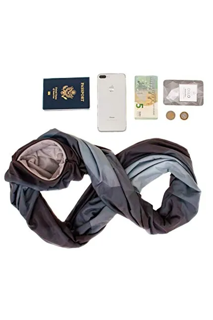 - SAFETY FIRST & FASHION FORWARD // Enjoy the freedom of knowing your belongings are safe, secure and in an unexpected location while still feeling your best, expressing your unique sense of style all while looking like a local instead of a tourist. No more pulling sweaty euros out of a money belt, just unzip your hidden scarf pocket and slip out your cash, cards, or keys.