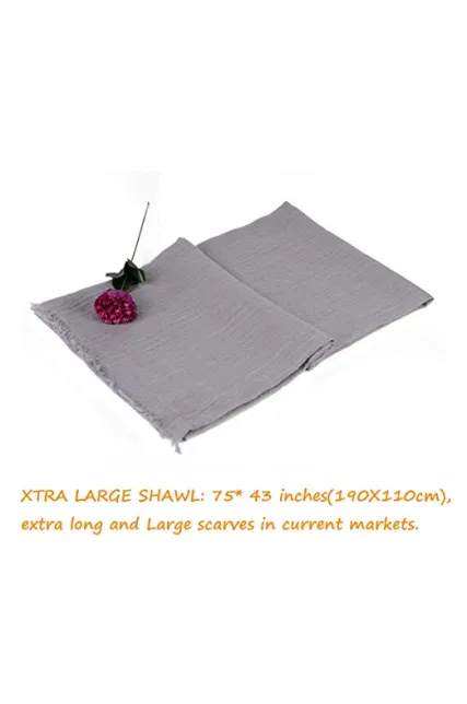- XTRA LARGE SHAWL: 75* 43 inches(190X110cm), extra long and Large scarves in current markets. The perfect length for wear can protect your skin against sun exposure with our scarves. Can be worn long, infinity, hijab, knotted ,twisted, wrapped or doubled around neck, shoulders and head.