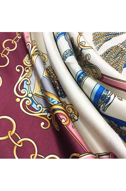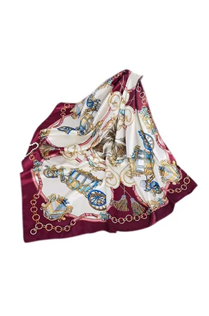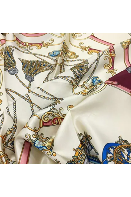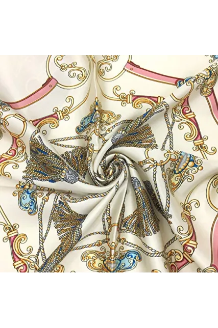 YOUR SMILE Silk Feeling Scarf Women's Fashion Pattern Beige Chain Large Square Satin Headscarf