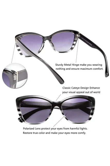 - FIRST-RATE QUALITY -- Suitable weight Comfortable frame, friendly to human body, using non-allergic materials, so that anyone can enjoy the beauty and protection of sunglasses. Frame width: 65mm, Frame height: 55mm, Temple Length:134mm. Superb sunglasses hinges, One-piece Nose pads, reducing the pressure on the nose