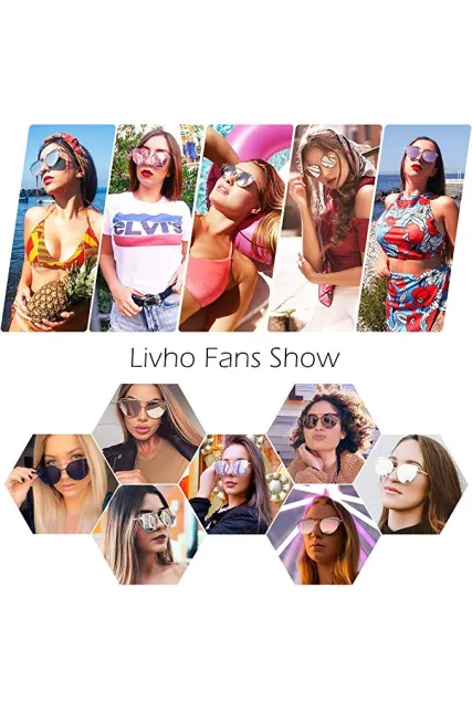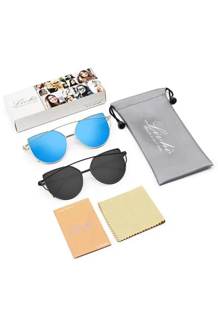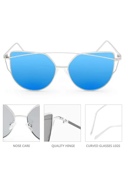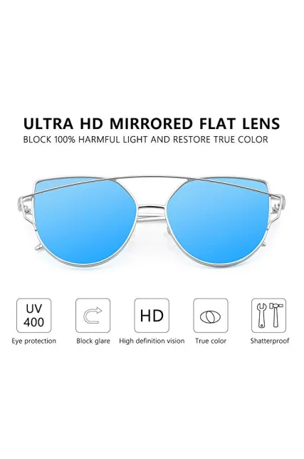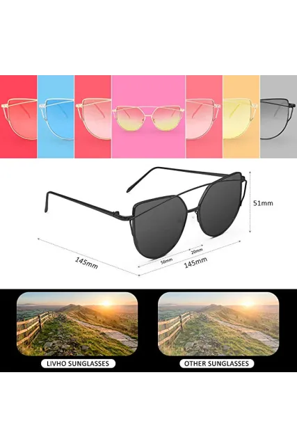 Livhò Sunglasses for Women, Cat Eye Mirrored + Transparent Flat Lenses Metal Frame Sunglasses UV400