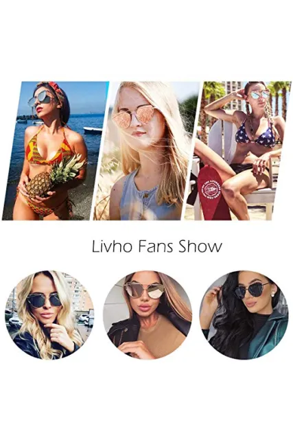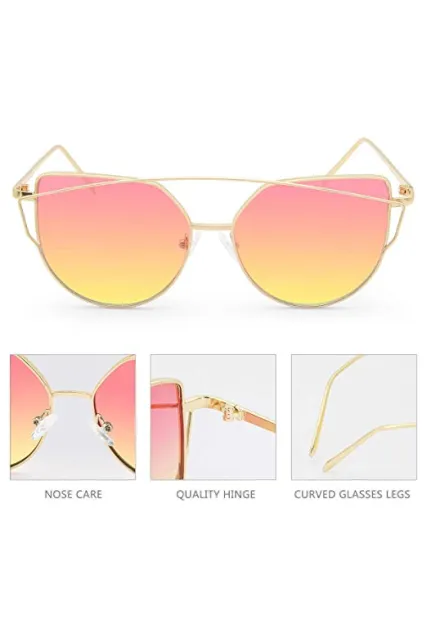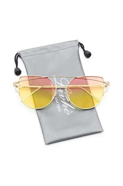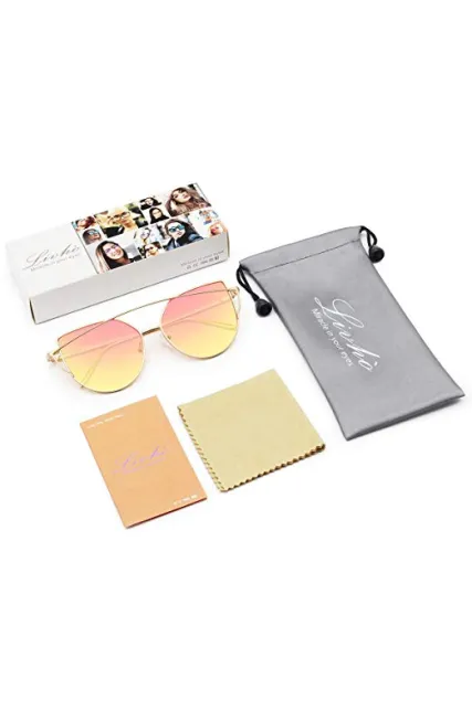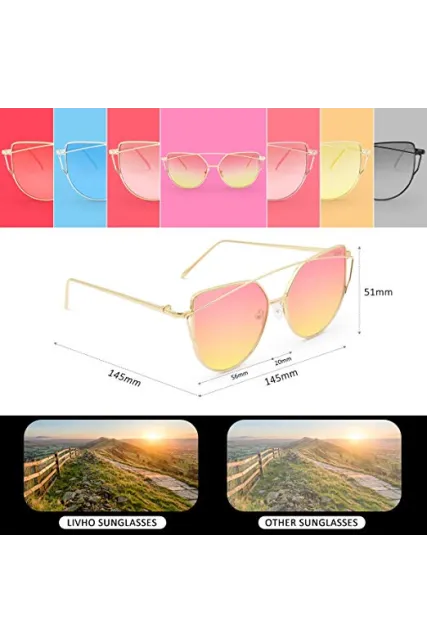 Livhò Sunglasses for Women, Cat Eye Mirrored + Transparent Flat Lenses Metal Frame Sunglasses UV400