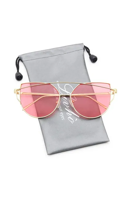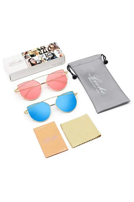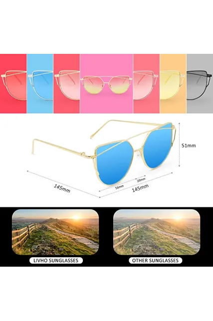 Livhò Sunglasses for Women, Cat Eye Mirrored + Transparent Flat Lenses Metal Frame Sunglasses UV400