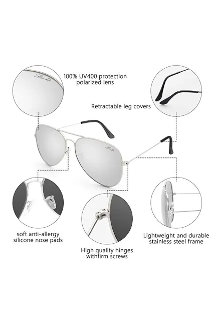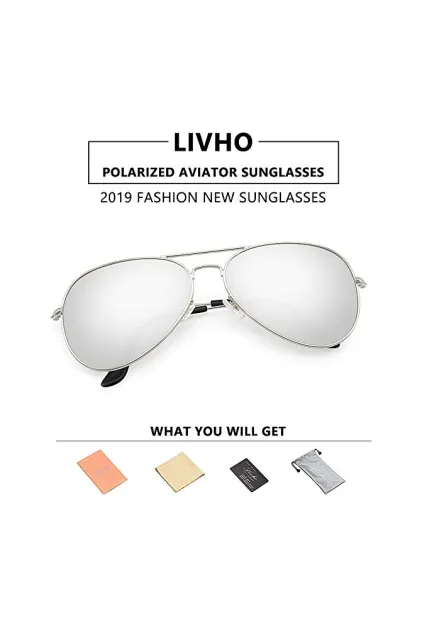 LIVHO Unisex Classic Aviator Polarized Sunglasses for Women Men Metal Frame Mirror UV400 Lens Protection Glasses