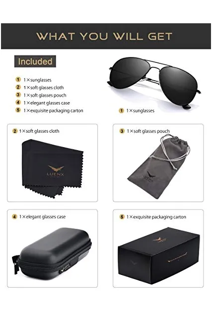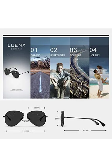 LUENX Men Aviator Sunglasses Polarized - UV 400 Protection with case 60MM Classic Style