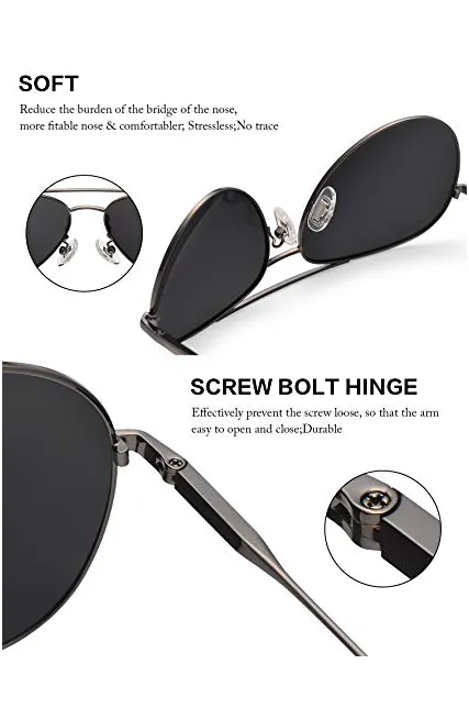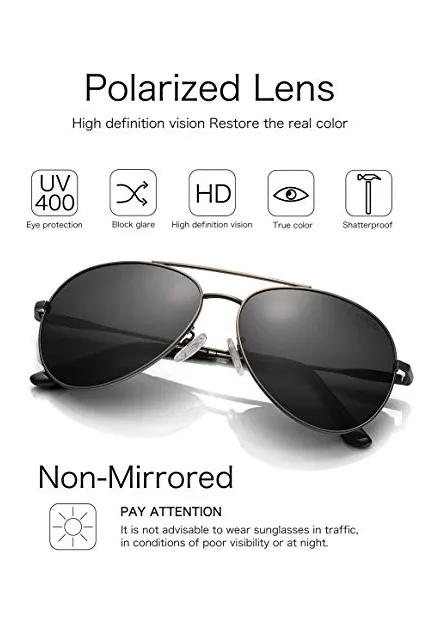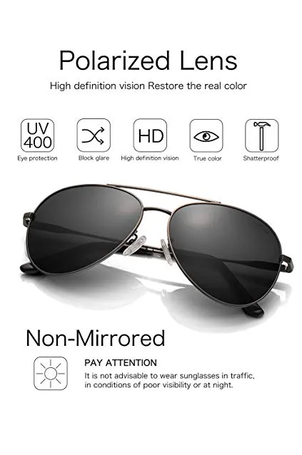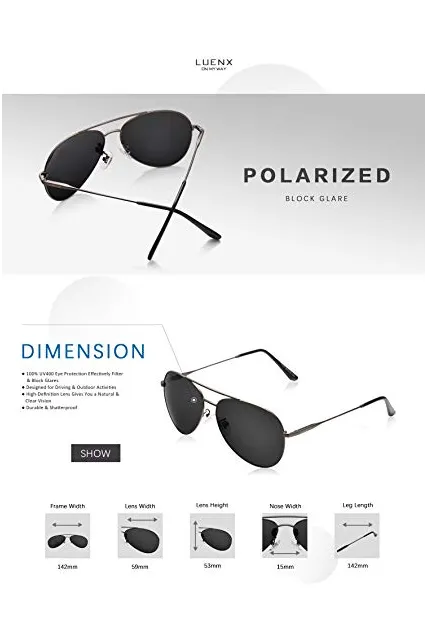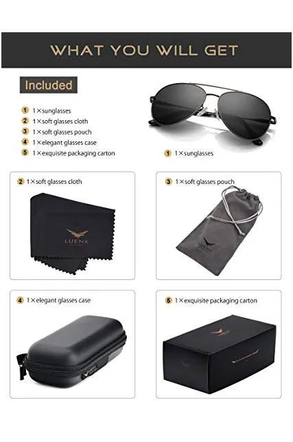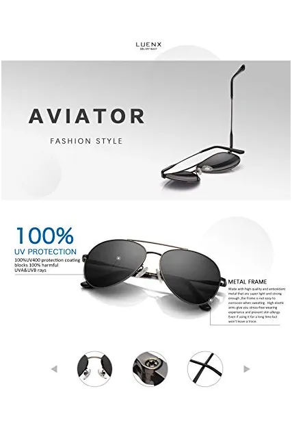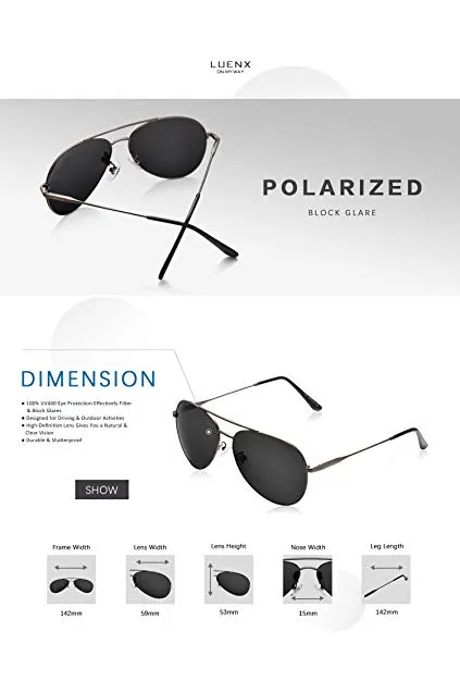 LUENX Men Aviator Sunglasses Polarized - UV 400 Protection with case 60MM Classic Style