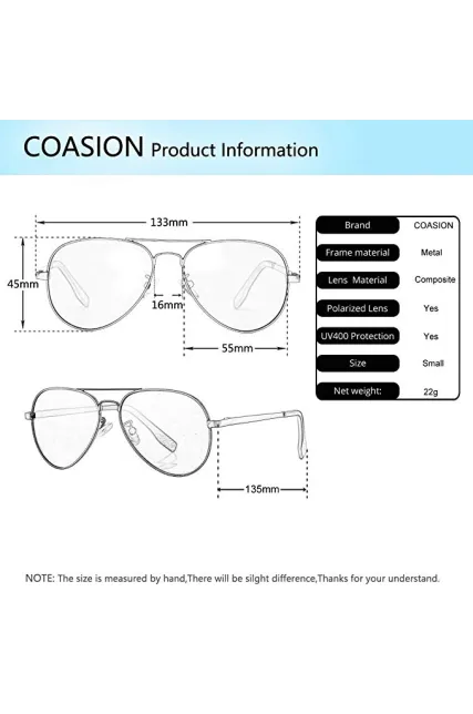 - Choose from Adult or Kids Sizes – 3 sizes: 55mm small aviator sunglasses, 58mm medium size aviator sunglasses, 62mm large oversized aviator sunglasses, suitable for adults with big fat face, adults with thin narrow face, teenagers, kids and children. See size chart for precise sizing information.