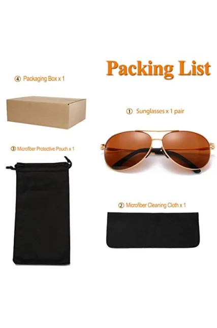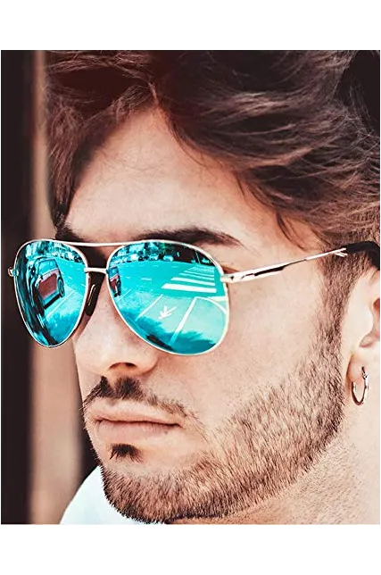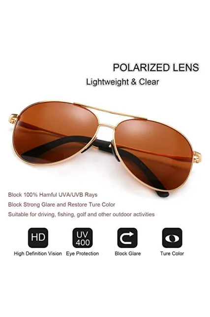 - TAC POLARIZED LENS – These aviator sunglasses are using 9-layer polarized lenses with the double UV blocking coating and polarizing film that keep your eyes fully protected against harmful UV, UVA/UVB rays! Water, snow, fishing, while driving or at the beach, they will help you have good vision!