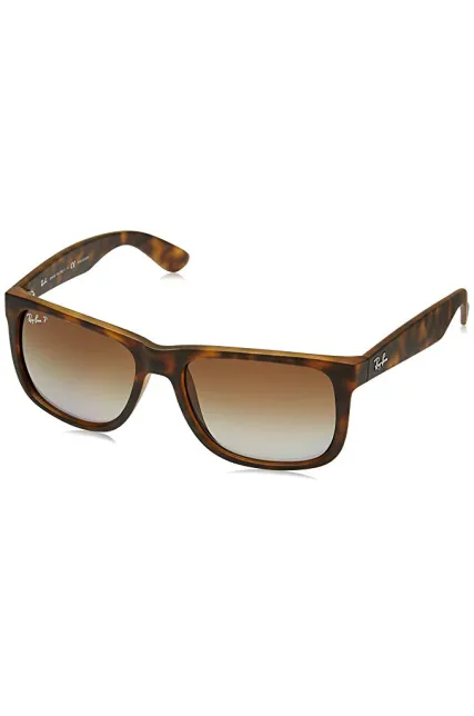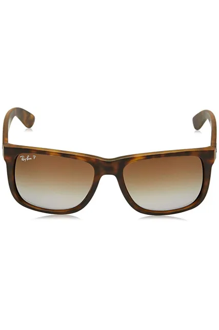 Ray-Ban RB4165 Justin Rectangular Sunglasses, Tortoise Rubber/Polarized Brown Gradient, 55 mm
