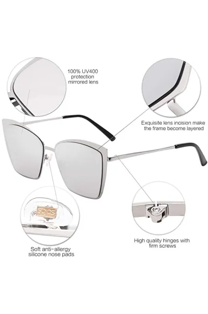 - FASHION UNIQUE DESIGN – This oversized cateye sunglasses remains true to its classic heritage. Exquisite metal frame design with premium materials enhances your wearing comfort and makes you more eye-catching in the crowd. They are suitable for any climate and weather conditions.