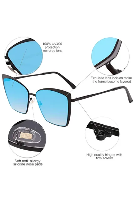 - FASHION UNIQUE DESIGN – This oversized cateye sunglasses remains true to its classic heritage. Exquisite metal frame design with premium materials enhances your wearing comfort and makes you more eye-catching in the crowd. They are suitable for any climate and weather conditions.