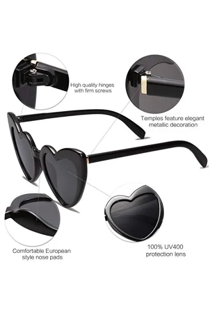 - UNIQUE STYLISH DESIGN – This heart shaped sunglasses is fashion modern style brand design. This sunglasses is made of high plastic material that is durable enough for long time using. It’s the perfect accessory for any outfit, can go with various of features and clothings. The most fashionable design, the perfect cover your eyes.