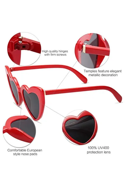 - UNIQUE STYLISH DESIGN – This heart shaped sunglasses is fashion modern style brand design. This sunglasses is made of high plastic material that is durable enough for long time using. It’s the perfect accessory for any outfit, can go with various of features and clothings. The most fashionable design, the perfect cover your eyes.