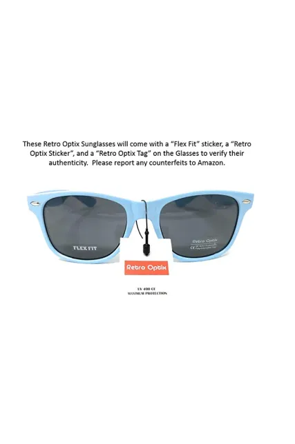 - Retro Optix Brand. Glasses have a Retro Optix Sticker and Flex Fit Hinge Sticker on Lenses. Smooth Finish Plastic Frame with Metal Hinge with Poly Carbonate Lenses.