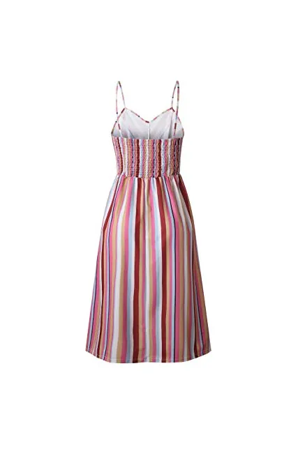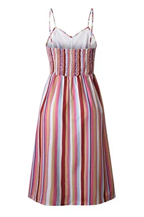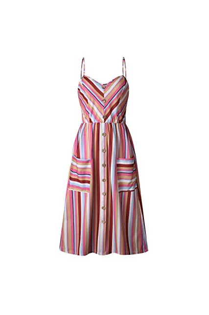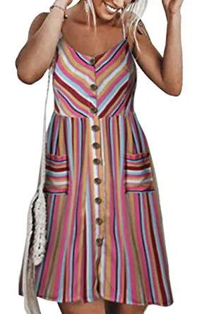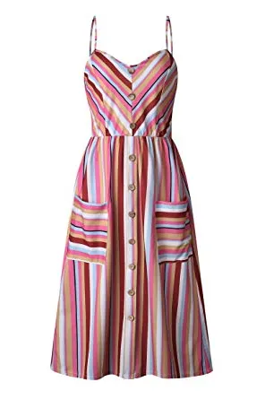 Angashion Women's Dresses-Summer Floral Bohemian Spaghetti Strap Button Down Swing Midi Dress with Pockets