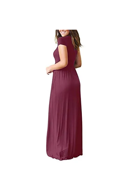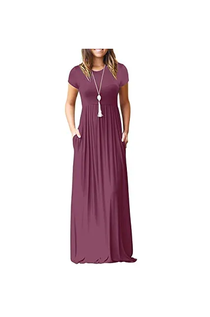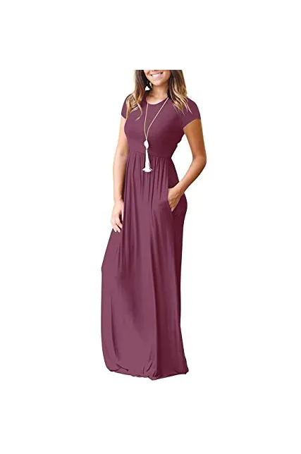 - Features: Casual Style,Two Side Pockets,Long Sleeves,Round Neck,Floor Length,Elastic at Waist,Maxi Dresses
