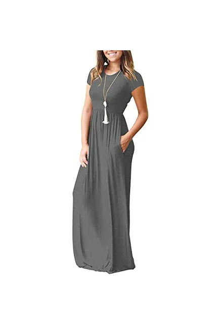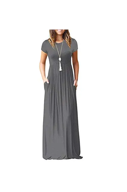 - Features: Casual Style,Two Side Pockets,Long Sleeves,Round Neck,Floor Length,Elastic at Waist,Maxi Dresses