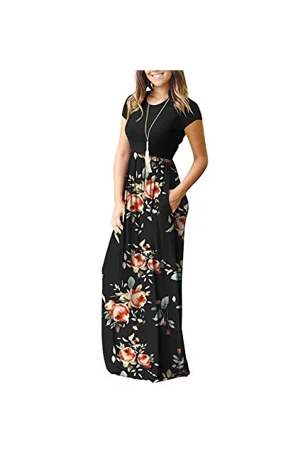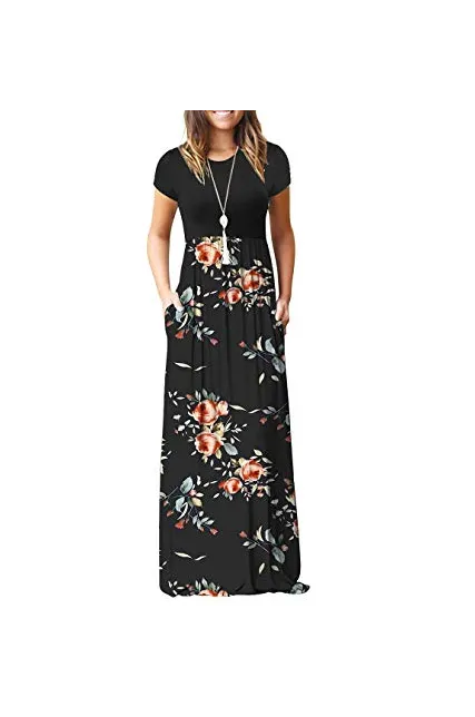 - Features: Casual Style,Two Side Pockets,Long Sleeves,Round Neck,Floor Length,Elastic at Waist,Maxi Dresses