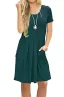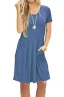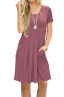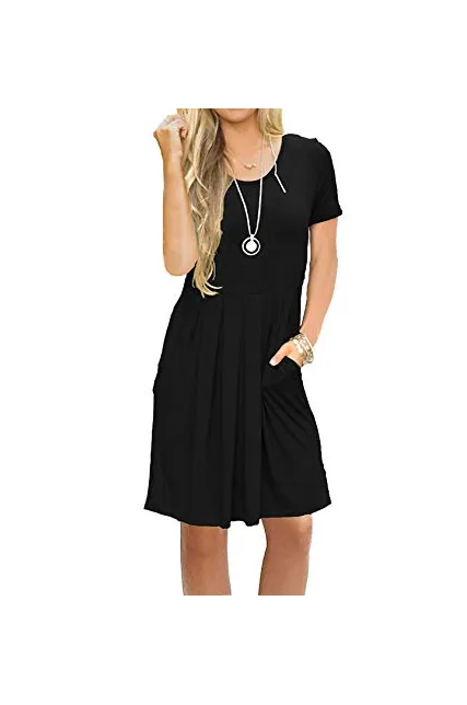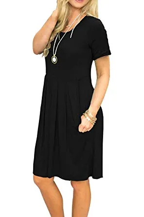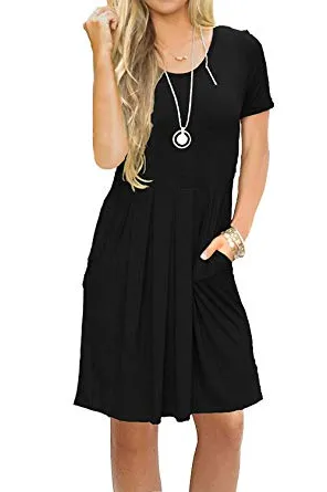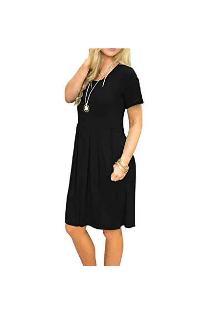 AUSELILY Women's Short Sleeve Pleated Loose Swing Casual Dress with Pockets Knee Length