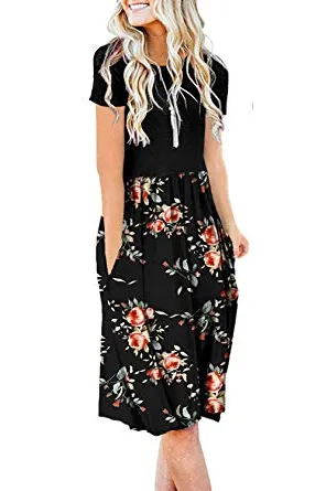 - Features: Round Neck ,Casual Style,Two Side Pockets,short sleeve,Elastic Waist, we love loose long dresses because they make us look more aristocratic and elegant.