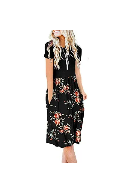 - Features: Round Neck ,Casual Style,Two Side Pockets,short sleeve,Elastic Waist, we love loose long dresses because they make us look more aristocratic and elegant.