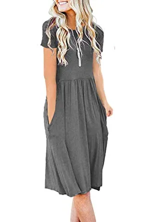 - Features: Round Neck ,Casual Style,Two Side Pockets,short sleeve,Elastic Waist, we love loose long dresses because they make us look more aristocratic and elegant.