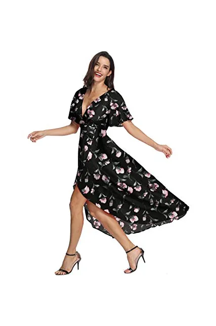 - ➤Dress Tip: Fake Wrap neck style dress looks quite sexy, if afraid of there’s a lot of room in the top, should style with an undershirt or strapless bra perfectly. We specially sew a detachable stitch in the chest for women. This dress will be shorter if taller women over 5 '8 ". Women who are concerned about the low cut, Please order carefully