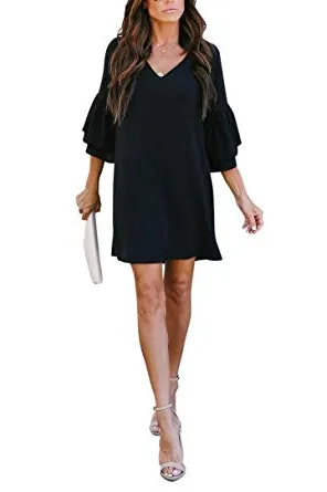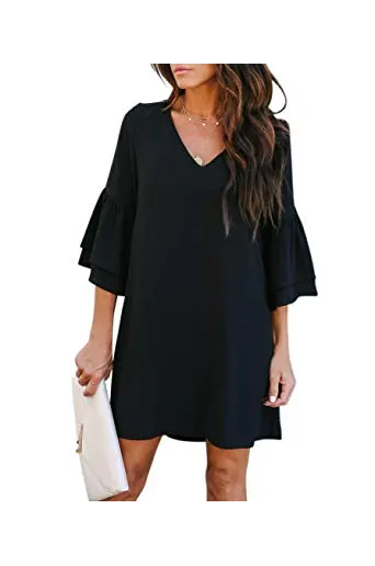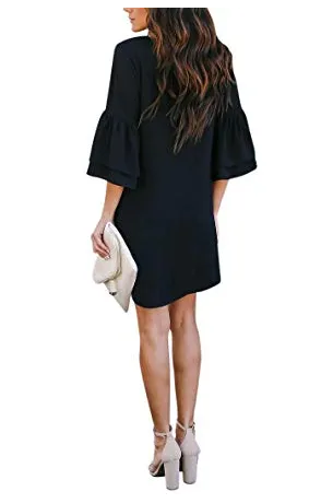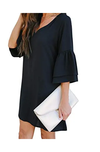 - Features: short dress, V-neck, bell sleeve, shift dress, sweet & cute, soft and attractive