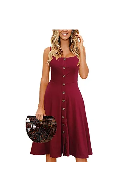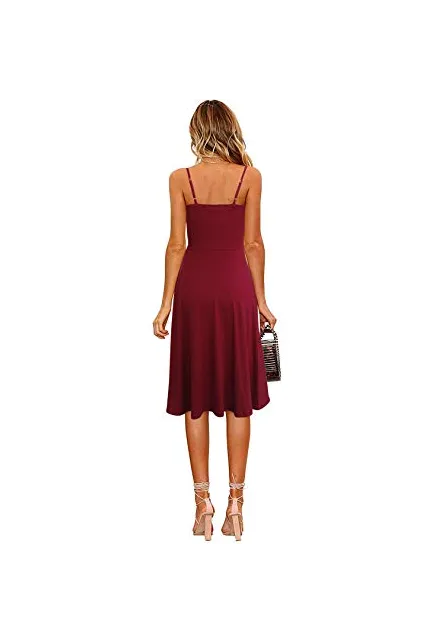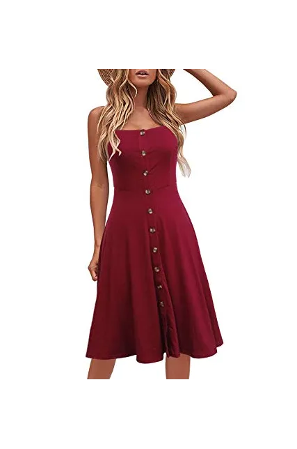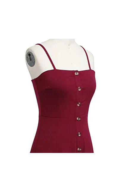 - Adjustable Spaghetti Straps, Functional Buttons Down Summer Dress, Midi Dress Length, Double Layers Fabric on the Dress Top, Not See Through