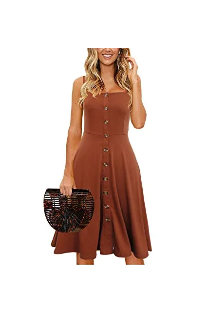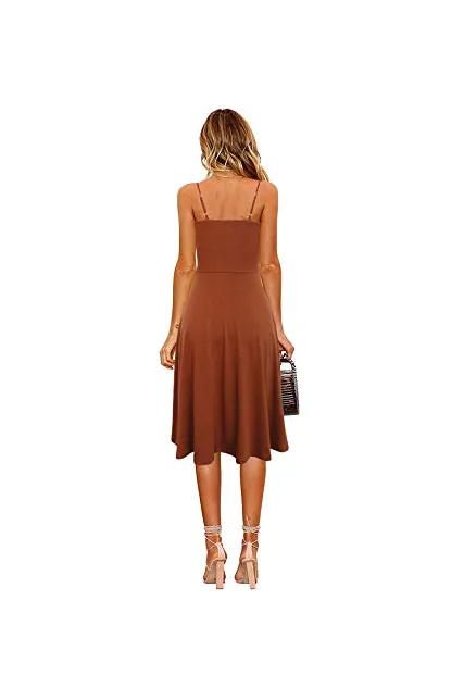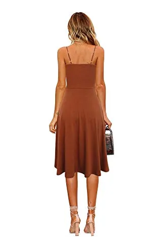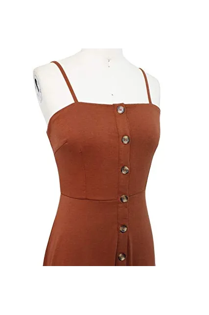 - Adjustable Spaghetti Straps, Functional Buttons Down Summer Dress, Midi Dress Length, Double Layers Fabric on the Dress Top, Not See Through