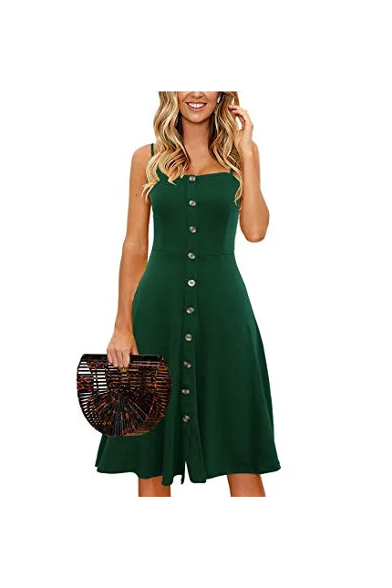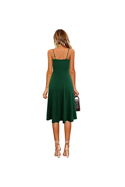 - Adjustable Spaghetti Straps, Functional Buttons Down Summer Dress, Midi Dress Length, Double Layers Fabric on the Dress Top, Not See Through